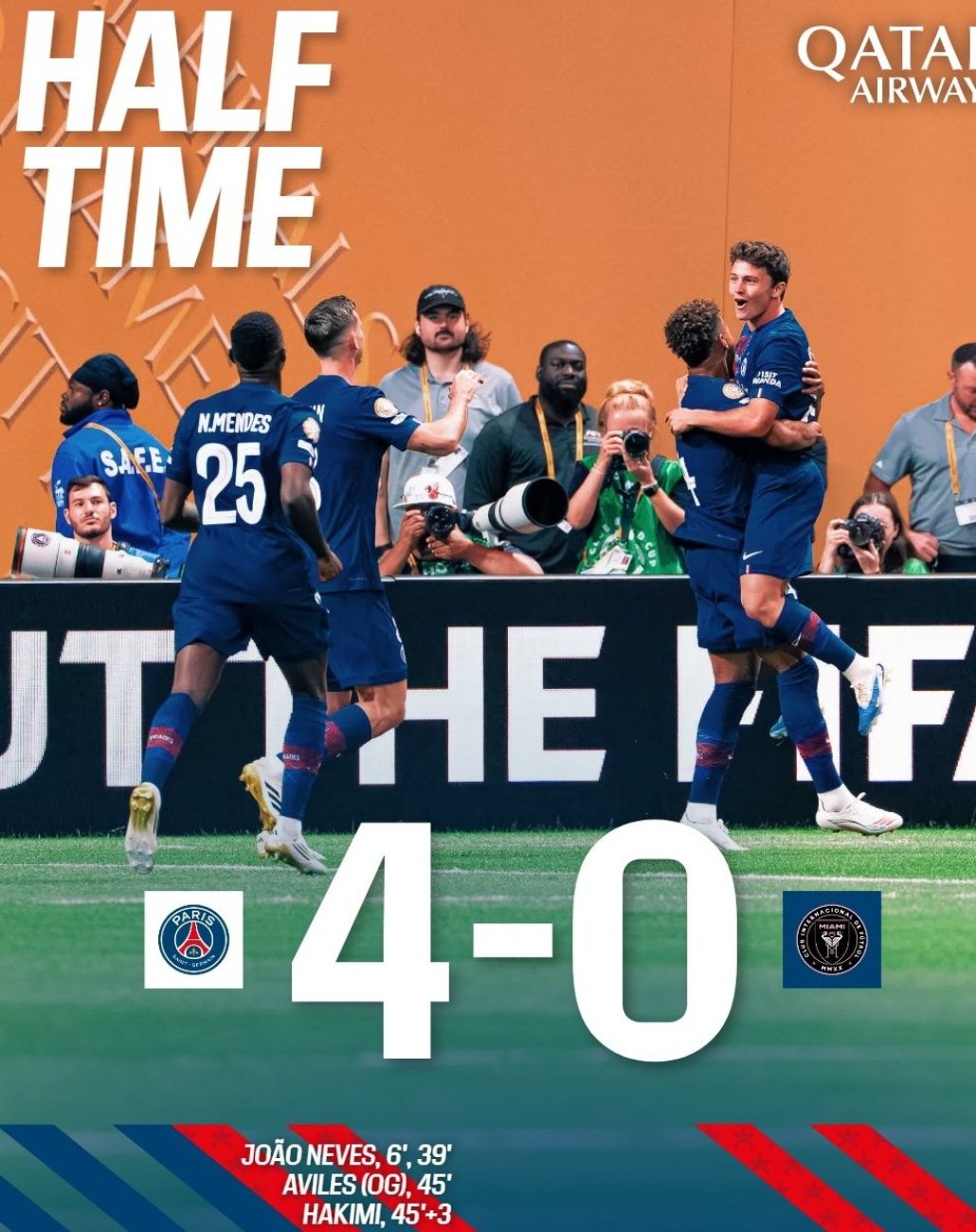 06月30日訊 世俱杯1/8決賽,巴黎圣日耳曼vs邁阿密國際。上半場比賽結(jié)束,巴黎4-0領(lǐng)先邁阿密。半場數(shù)據(jù)如圖所示。