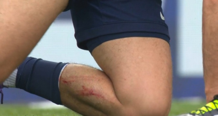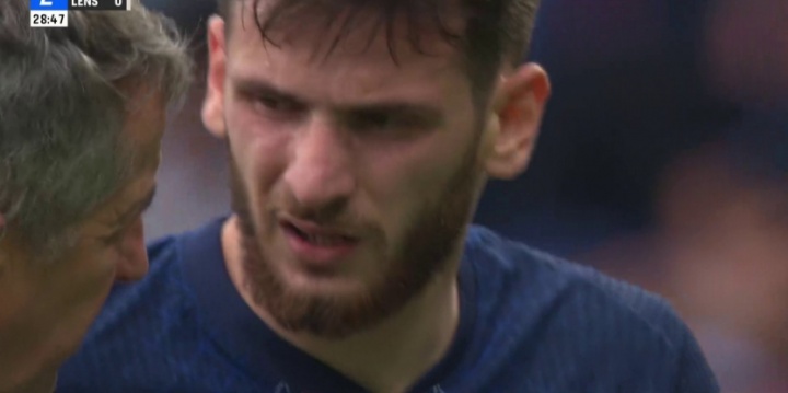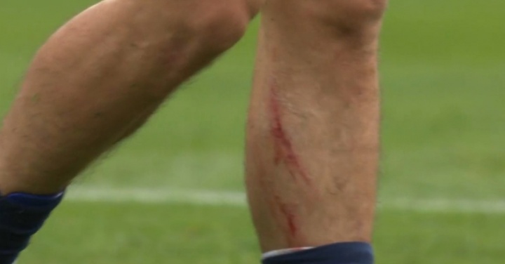 09月14日訊 法甲第4輪巴黎vs朗斯第28分鐘,K77遭愛德華鏟球受傷傷退,小腿兩道血痕十分明顯,無法堅持比賽被換下,姆巴耶登場!